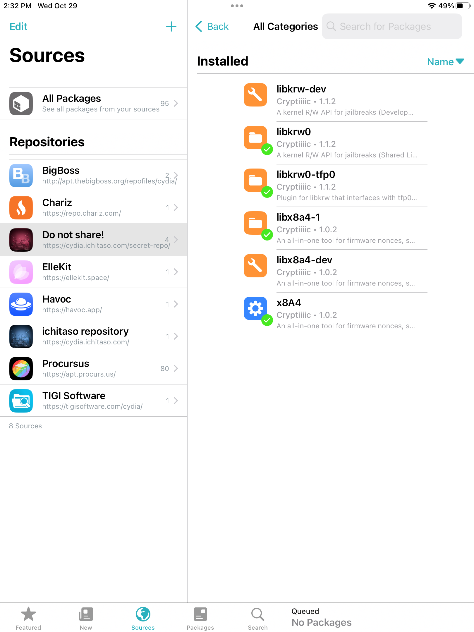 https://cydia.ichitaso.com/secret-repo - libkrw0, libkrw0-tfp0, libx8a4-1, x8A4 4개의 패키지를 설치해준다. 추가로 openssh-server까지 설치해야된다.