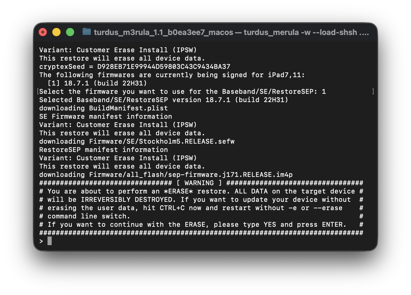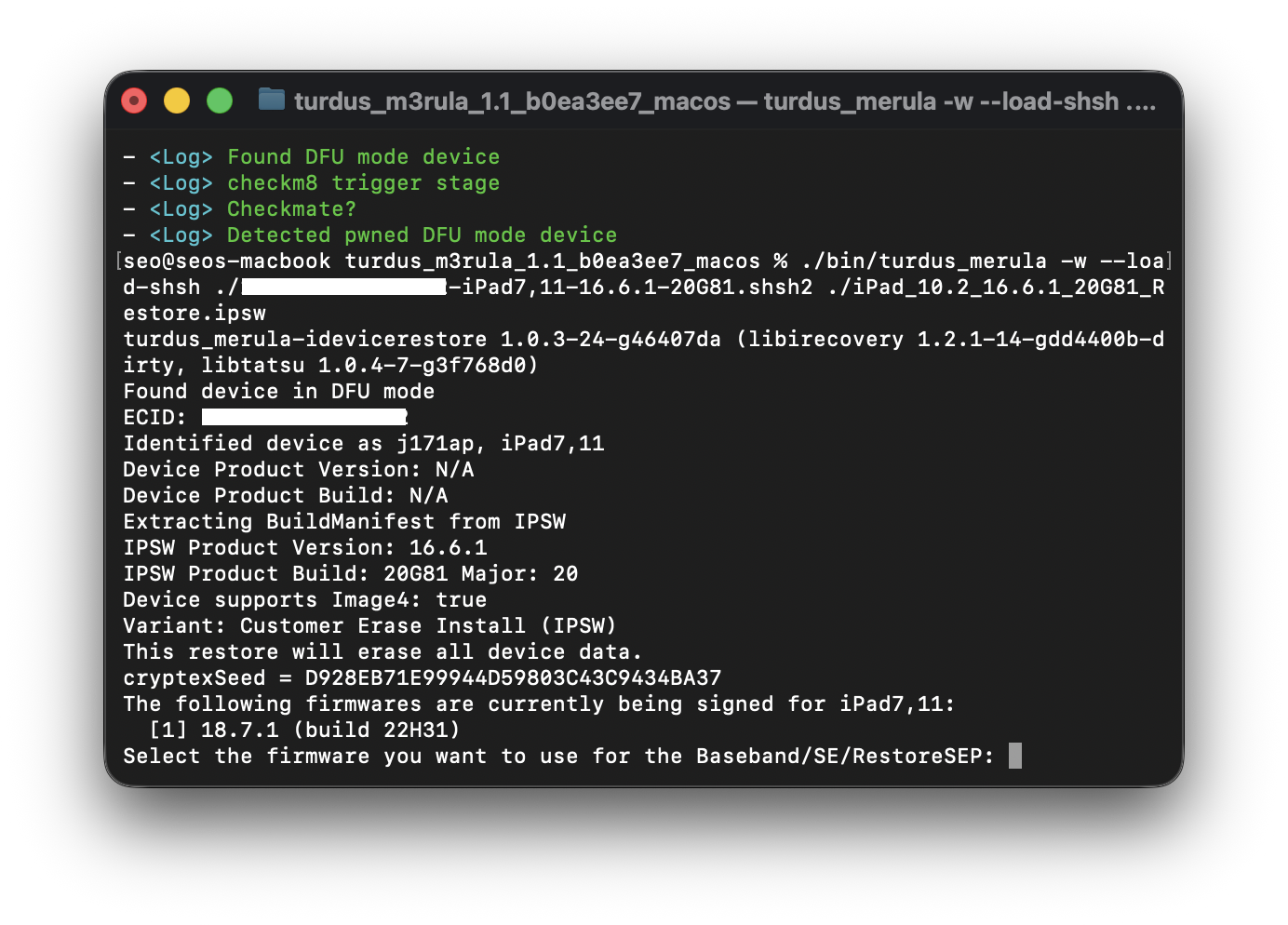 ./bin/turdus_merula -w --load-shsh [shsh blob] [ipsw file]