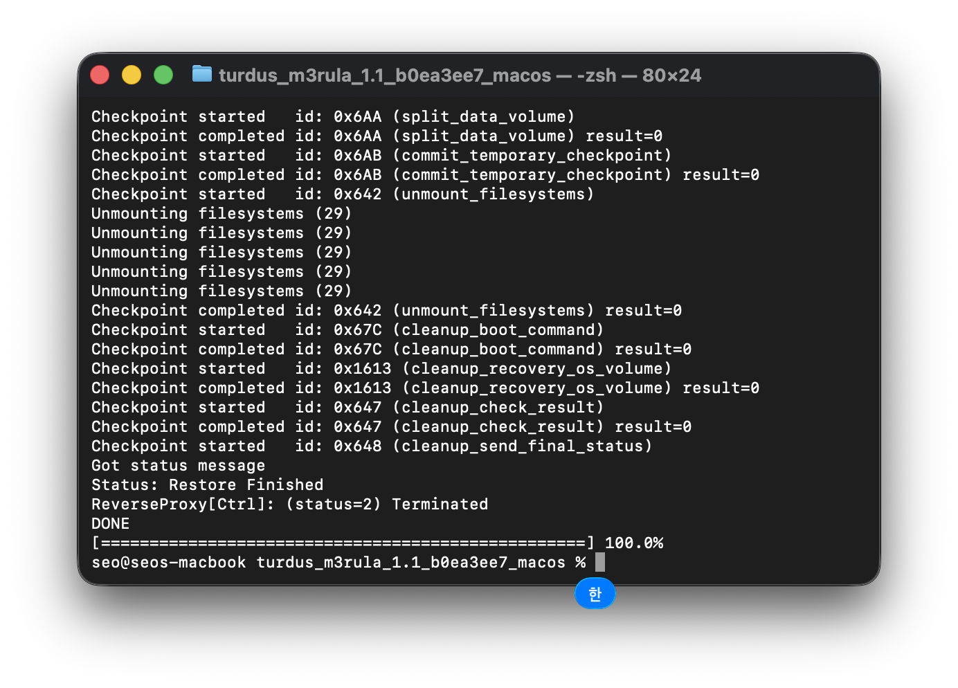 그리고 터미널 연다음, 해당 프로젝트 경로에서 ./restore.sh 실행.